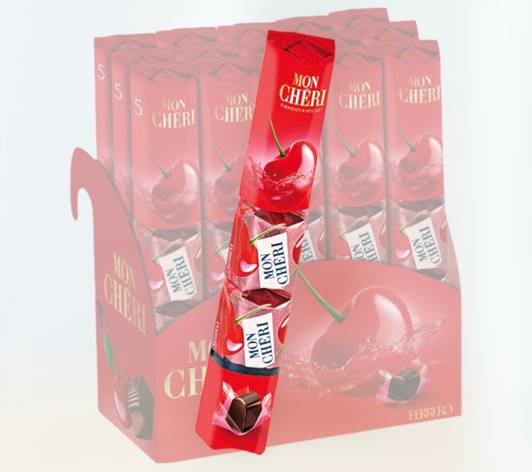 Ferrero – Mon Chéri (T10) – 8x 105g We also supply; Mon Cheri T5 52,5g, Mon Cheri T15 157g, Mon Cheri T25 262g, Mon Cheri T30 315g
