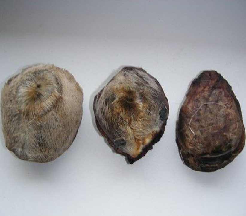 One adult male gland normally contains 10-20 g (sometimes 30-50 grams) of natural musk – a thick gelatinous substance with a sharp specific smell – the most expensive animal products. When drying the smell almost disappears, but reappears when wet.